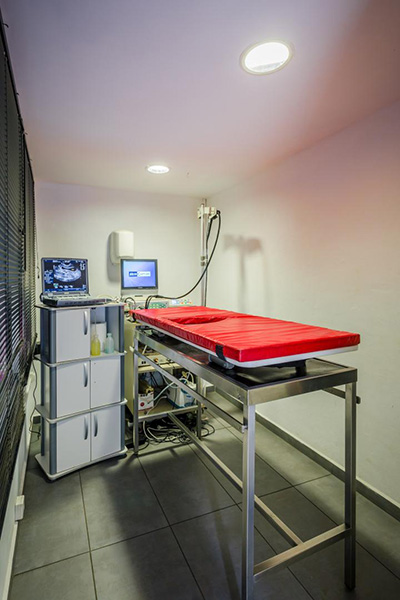Nous disposons également d’un échographe, plus adapté pour la vision des tissus mous (foie, rein, rate,..), permettant de compléter notre diagnostic. Il nous permet de réaliser des prélèvements dans la plus grande sécurité (cytoponction échoguidée). Enfin, il peut permettre la détection de gestation de manière précoce.